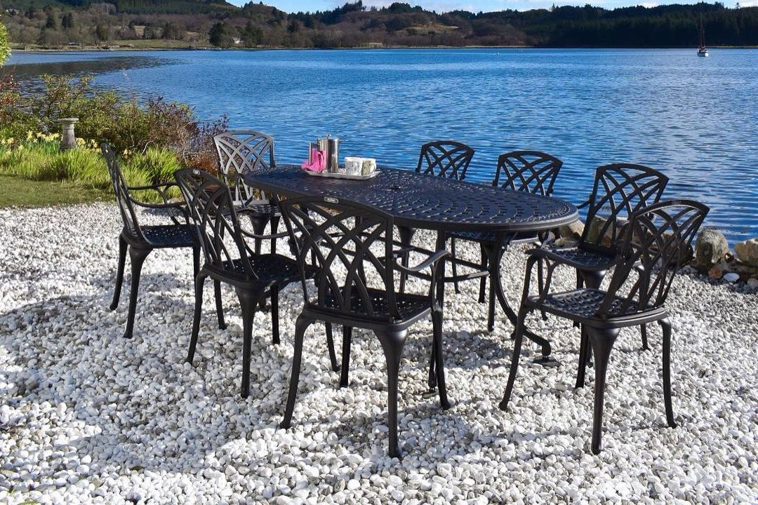Product dat je hier vindt: De Catherine 8-zits met April stoelen in Antiek Brons.