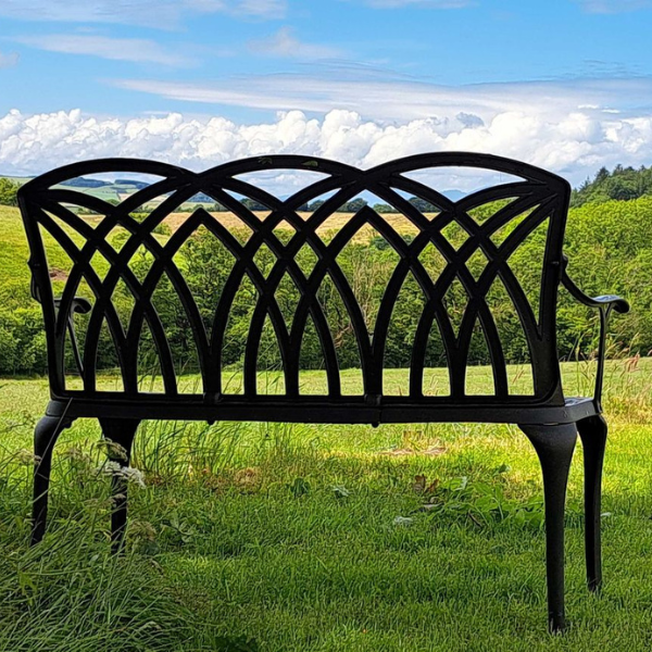 Product dat je hier vindt: de Madison tafel met stoelen van april en de April tuinbank in Antiek brons.