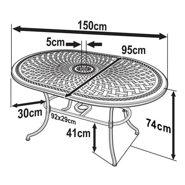 De June tafel is onze bestverkopende ovale 6 persoons set en erg geliefd bij onze klanten, met meer dan 150 positieve klantenbeoordelingen en tientallen foto's van klanten in onze productgalerij hierboven. De June 6 persoons tafel in Antiek Brons is ook verkrijgbaar in het Wit en in ons steeds populairder wordende nieuwe kleur Leigrijs. De tafel is gemaakt van een hoge kwaliteit gegoten aluminium, dat nooit zal roesten noch verrotten, en weegt ongeveer 19 kg.