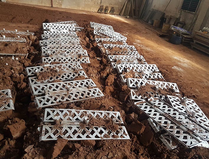 Het zandgietproces wordt herhaald met deze mallen en de onderdelen worden geoogst.