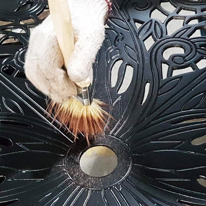 Zodra het materiaal is uitgehard, wordt het verwijderd en worden de details uitgesneden, waardoor een mal ontstaat voor elk onderdeel van ons meubilair.