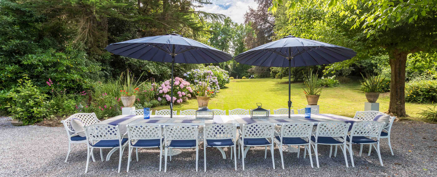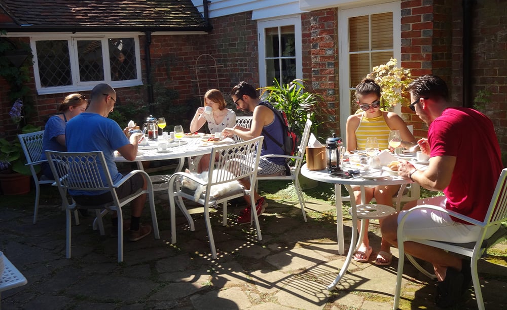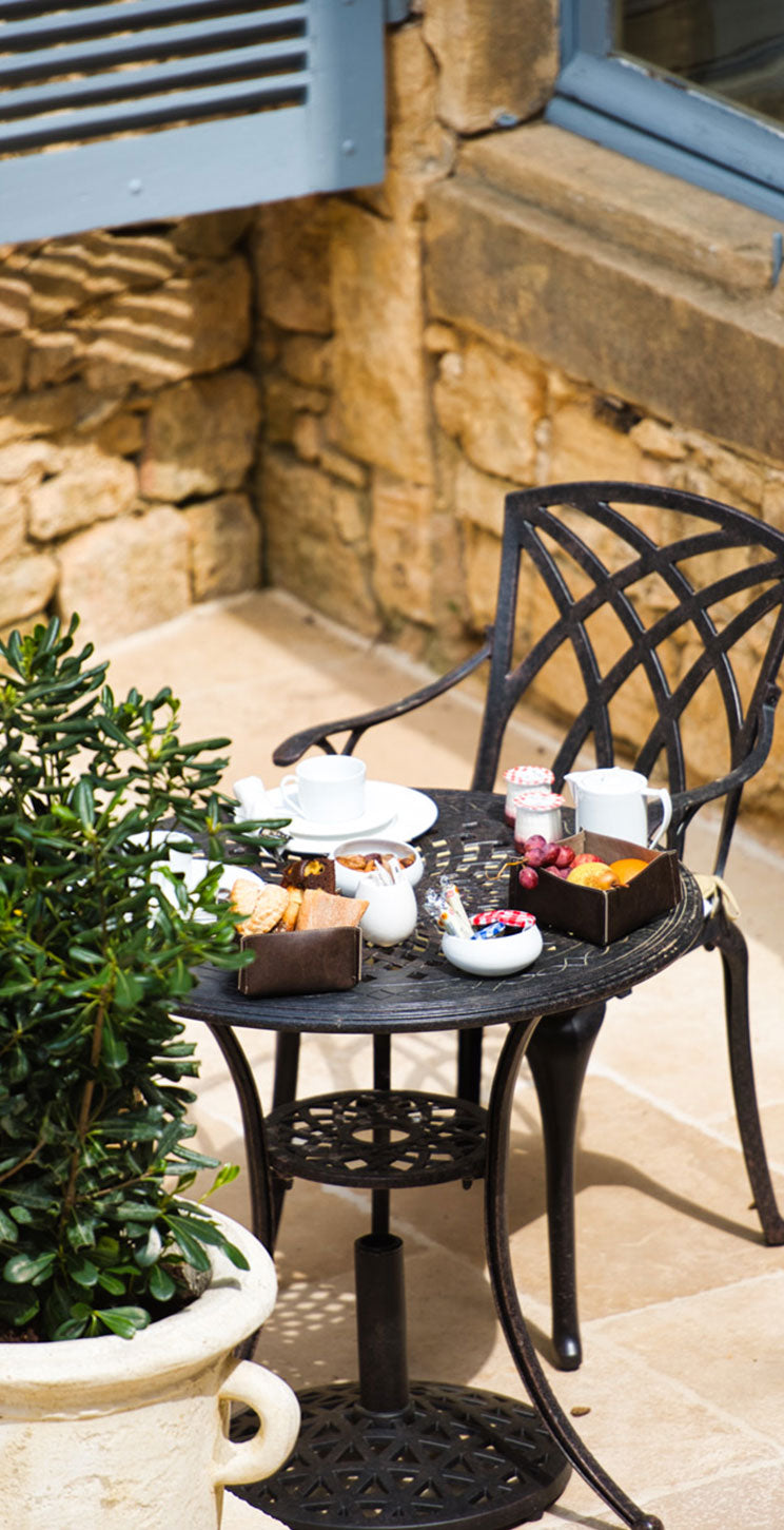 Little Dane Court is een 500 jaar oud huis in het centrum van Tenterden Kent dat gerund wordt als bed & breakfast voor bezoekers van de plaatselijke wijngaarden en beroemde tuinen. Het heeft een omheinde binnenplaats aan de achterkant van het huis die ideaal is voor al fresco ontbijt in de zomermaanden. De eigenaar kocht zeven jaar geleden Lazy Susan tafels en stoelen om de binnenplaats in te richten en is onder de indruk van hoe goed ze het in de loop der jaren hebben gedaan en er nog steeds als nieuw uitzien.