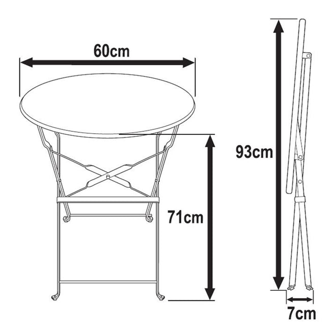 Onze Alessia Bistrotafel is een kleine stalen plooibare tafel met een rond tafelblad. Het ontwerp is eenvoudig maar toch elegant en gebouwd om lang mee te gaan. Deze bistrotafel is perfect voor koffie, thee en hapjes. Het is ideaal voor een balkon of een kleine tuin omdat het niet veel plaatst vraagt, en zowel de tafel als de extra Alessia bistrostoelen (kijk hier) kunnen gemakkelijk worden geplooid en opgeborgen.