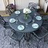 De ronde Amelia tafel van 150 cm is gemaakt van onderhoudsvrij zandgegoten aluminium en weegt ongeveer 31 kg. Zoals al onze tuinmeubelsets, biedt het gegoten aluminium kader weerbestendigheid van een ongeëvenaard niveau, wat wil zeggen dat je de nieuwe tafel het hele jaar lang in je tuin kan laten staan en afdekken niet nodig is. Deze set vereist een vloeroppervlakte van 300 x 300 cm (9 ft 10 'x 9 ft 10') en wordt compleet geleverd met 8 metalen tuinstoelen naar keuze. Er is ruim de plaats voor acht stoelen als je wat extra vrienden of familie wilt uitnodigen om te genieten van al fresco te dineren. Als de Amelia niet helemaal is wat je zoekt, kun je ook onze bestverkopende Frances 8 persoons set overwegen.