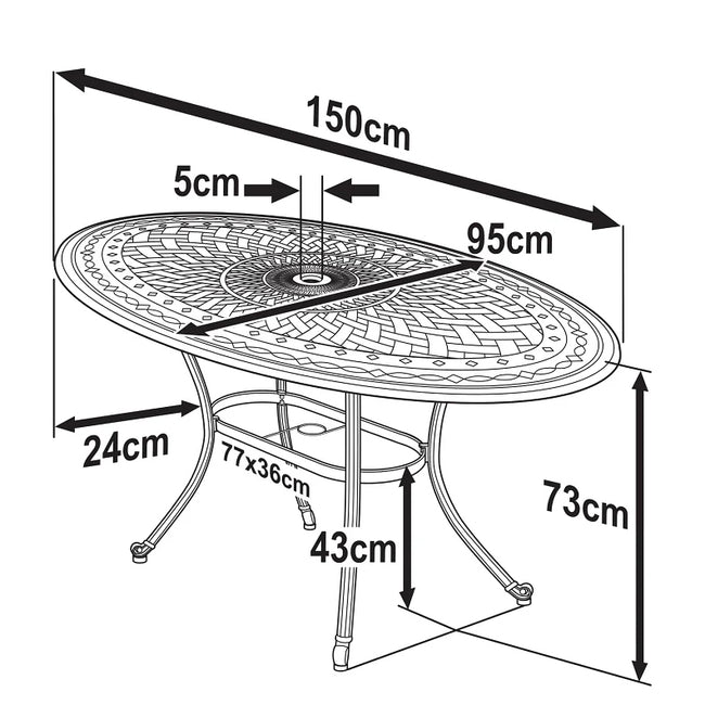 De elegante ovale Emily tafel is gemaakt van weerbestendig zandgegoten aluminium en zal dus nooit roesten en nooit rotten. Ze is perfect voor het ontvangen van grote groepen en om drinks te organiseren bij zonsondergang of al fresco dinner. Ze is in volle glorie in een grotere tuin of binnenplaats. Geniet met volle teugen van de zon met de Emily tafel. De keuze van de stoelen is ook verkrijgbaar met de Emily tafel zodat je ze kan personaliseren en er een tuinset van maken die je met trost de jouwe noemt. Waarom bekijk je niet een paar van onze geweldige aanbiedingen dat we hebben voor onze bestverkopende producten in de "Geschenk" afdeling hierboven. De Emily tafel is ook verkrijgbaar met twee extra stoelen aan een sterk gereduceerde prijs, wil je meer zitruimte ga dan naar de Emily 6 persoons set.