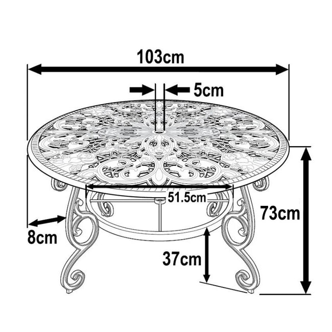 Flora van de naam en Flora voor het ontwerp, het uniek tafel ontwerp brengt een toets van klassieke elegantie in de tuin. Je hoeft je niet druk te maken over het verplaatsten van de tafel in de tuin want ze weegt slechts 19 kg, waardoor het verplaatsen een moeiteloze taak wordt. Met een omtrek van 103 cm is deze ronde tafel ideaal voor plaatsen waar ruimte beperkt is, wil je een iets grotere tafel bekijk dan de Joyce tafel 135 cm voor 6 personen.