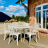 De Frances metalen tuinmeubel set voor 6 personen is al meer dan 3 jaar één van onze bestverkopende producten. Onze Frances tafel heeft meer dan 120 geweldige beoordelingen en blijft een favoriet bij onze klanten. De Frances 6 persoons tafel set is de perfect maat voor een familie etentje, barbecues of gewoon om een ontspannende avond door te brengen in de zon. Het kan ook worden aangekocht als een set voor 8 personen, als je hostingbehoefte iets groter zijn. De tafel is gemaakt van hoogwaardig gegoten aluminium en weegt ongeveer 26kg. Haar gegoten aluminium kader biedt ongelofelijk veel bescherming zelf onder de zwaarste condities, heel het jaar door.
