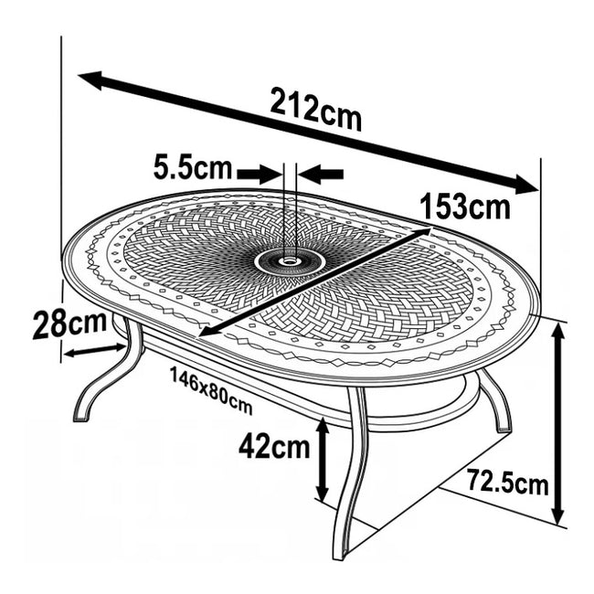 Creëer een stijlvolle, ontspannende ruimte in je tuin met onze ovale 10 persoons Gloria. De set is gemaakt van een hoge kwaliteit zandgegoten aluminium en ontworpen om heel het jaar door buiten te staan. De set is enorm populair bij onze klanten en heeft meer dan 50 fantastische beoordelingen. Deze 10 persoons kan makkelijk veranderen in een compacte 10 persoons als je een paar extra stoelen koopt.