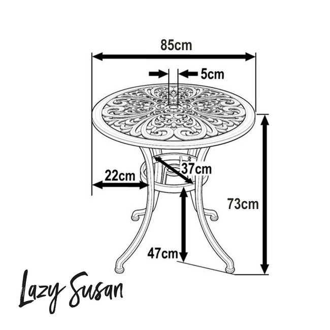 De Jill tafel ziet er niet alleen goed uit omdat ze gemaakt is van gegoten aluminium ze is ook duurzaam en roestvrij. Perfect voor binnenplaatsen en kleinere tuinen zelf voor balkons, de Jill tafel is erg geliefd bij onze klanten. Ze is perfect voor romantische maaltijden en een zonnig ontbijt en je kunt ze het hele jaar door buiten laten. De Jill tafel wordt geleverd met stoelen naar keuze zodat je het eigen kan maken. Ook verkrijgbaar als 4 persoons set.