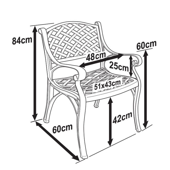 De Kate is een hoogwaardige Lazy Susan tuinstoel optie, weegt een stevige 8 kg en kenmerkt zich door haar contouren die speciaal ontworpen zijn voor maximum comfort. Gemaakt van hoogwaardig zandgegoten aluminium dat nooit zal roesten of rotten en afgewerkt in ons mooi Antiek Brons. De Kate stoel is erg populair en kan het hele jaar door buiten blijven staan zonder nodig onderhoud. Ze is ontworpen om te matchen bij al onze tuintafels in het Antiek Brons. Robuuste en volledig waterproef, de Kate stoel wordt ook geleverd in het klassiek Wit of glad Leigrijs, je kunt direct een vleugje stijl toevoegen en extra comfort door te kiezen voor waterbestendige kussens uit bovenstaande opties die verkrijgbaar zijn in vier mooie verschillende kleuren.