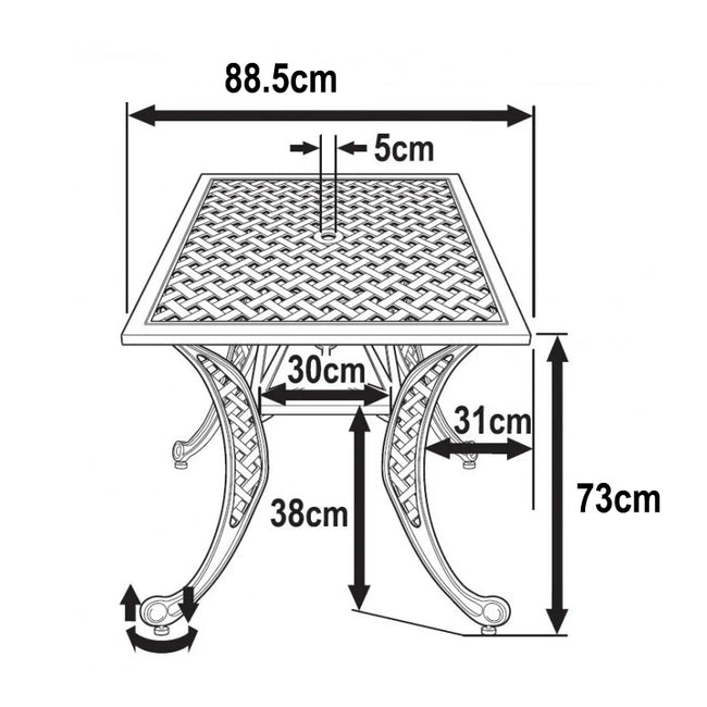 De Lucy is een vierkante tafel van 91 x 91 cm met een groot lattenontwerp en een dunne rand. Gemaakt van hoogwaardig zandgegoten aluminium met een witte klassieke afwerking, onze weerbestendige en duurzame Lucy tafel die meer dan 20 positieve beoordelingen heeft is erg geliefd bij onze klanten. Perfect voor etentjes buiten, je kan deze set helemaal personaliseren met een variatie aan charmante stoelen en kussens aan geweldige prijzen. Alternatief, als je wat meer plaats nodig voor feestjes, bekijk dan onze bestsellers June en Alice sets voor 6 personen.