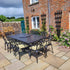 De rechthoekige Madison tafel voor 10 personen is gemaakt van hoogwaardig zandgegoten aluminium die onderhoudsvrij is en je nog vele jaren leuke eetervaringen zal bieden. Perfect voor een groot terras of gazon en biedt veel ruimte voor drankjes en eten. Veel klanten willen 6 stoelen of 2 tuinbankenbestellen, bel of e-mail ons en we kunnen de bestelling vervolledigen met de juiste combinatie. Om volledig te genieten van het comfort van de Madison set voor 10 personen, voorzie een vloerruimte van 410x270cm. (Zie specificatie en afmetingen van de stoel voor meer informatie).