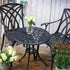 De Tulip 2 persoons is een stijlvolle ronde bistrotafel en heeft een zacht bloemmotief met een elegante Antiek Bronzen afwerking. Met een diameter van 60 cm en een gewicht van minder dan 5 kg, de Tulip bistrotafel is gemaakt van een hoogwaardig zandgegoten aluminium die nooit zal roesten noch zal verrotten en het kan het hele jaar door buiten blijven staan zonder onderhoud. Dat maakt het de perfecte keuze voor kleinere tuinen, binnenplaatsen en balkons. Kies om te personaliseren hierboven één van onze elegante stoelkeuzes en voeg mooie waterbestendige kussens toe die verkrijgbaar zijn in vier verschillende mooie kleuren om je set te vervolledigen. Geniet van vele romantische al fresco etentjes en een drankje met de Tupil tafel of als je iets groter nodig hebt bekijk dan als alternatief onze best verkopende Alice of Mia 4 persoons sets.